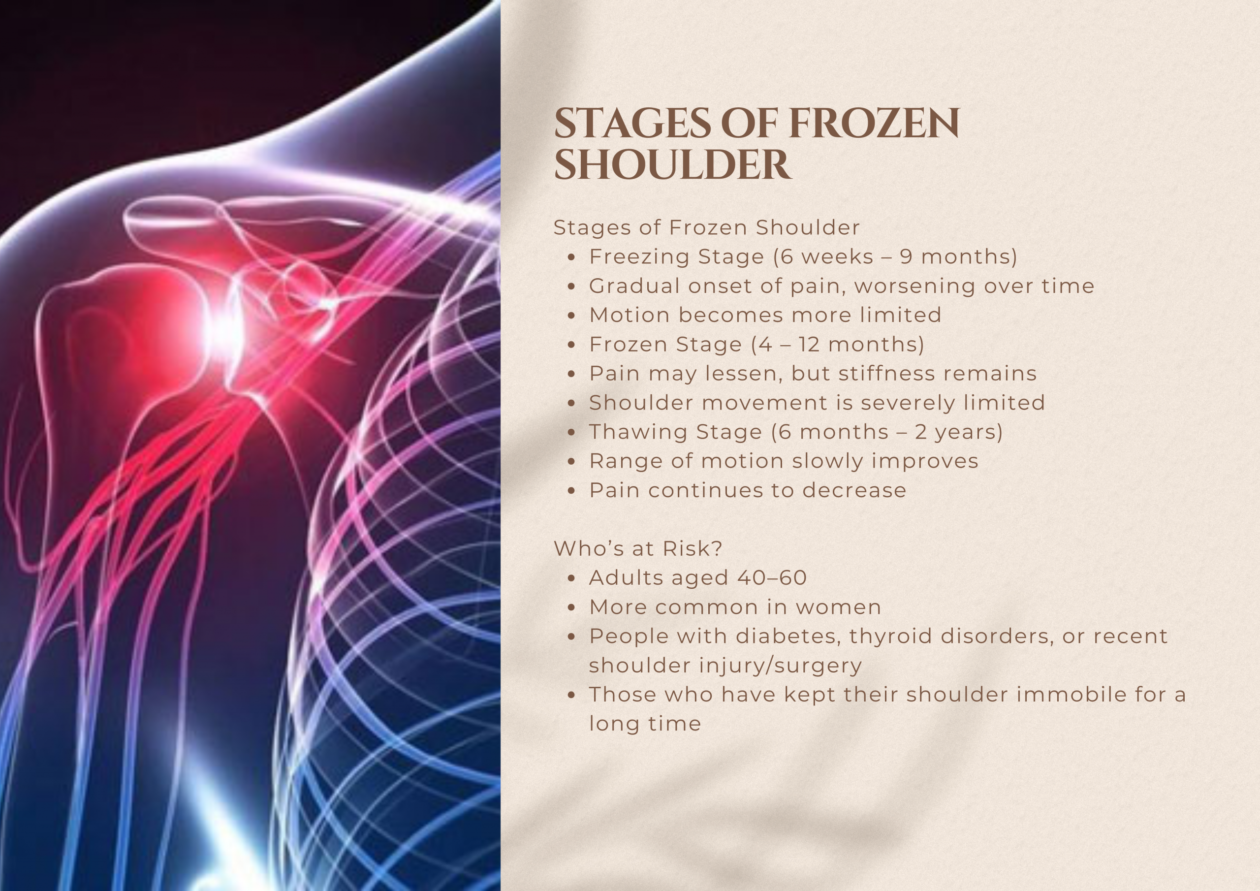 Medical massage is a therapeutic technique that targets the root cause of pain. It works by releasing muscle tension, reducing nerve compression, improving blood flow, and restoring nervous system balance. This approach effectively relieves chronic symptoms like headaches, neck and shoulder pain, sciatica, and joint or nerve-related discomfort.